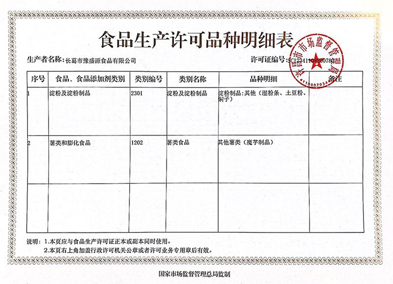 食品生产许可证品种明细表